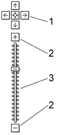- Zoom slider - Drag the zoom slider up or down to zoom in or out incrementally.